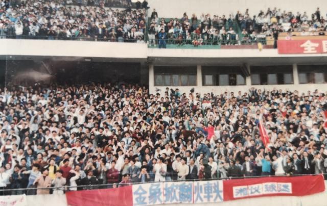 1994年甲B末轮,湖南金象队面临保级战,贺龙体育场涌入了6万多球迷。