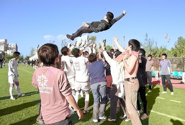 2009年,湖南湘涛冲甲成功,队员们将主管足球的熊倪副局长抛向空中庆祝胜利。